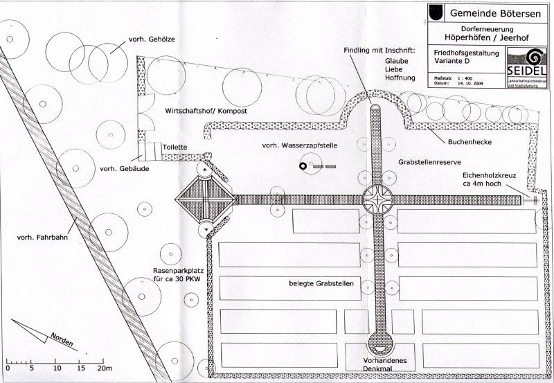 Gemeinde Bötersen - Dorferneuerung Höperhöfen / Jeerhof Protokoll der 21. Arbeitskreissitzung Datum:Mittwoch, den 14.10.2009 Zeit:Beginn 19.30 Uhr Ort:Feuerwehrhaus Höperhöfen 1.Begrüßung und Wahl einer/eines neuen Arbeitskreisvorsitzenden Bürgermeister Wernecke eröffnet die Sitzung und begrüß Herrn Seidel, Herrn Spille und die Arbeitskreismitglieder. Da Hans-Hermann Hollmann aus persöhnlichen Gründen den AK-Vorsitz niedergelegt hat, wird zunächst ein(e) neue(r) AK-Vorsitzende (r) gewählt. Bürgermeister Wernecke schlägt Friedhelm Holsten vor. (Stellvertreter ist weiterhin Hermann de Vries.) Die anschließende Abstimmung ergibt folgendes Ergebnis: 6 Ja, 3 Enthaltungen, 0 Nein-Stimmen. Friedhelm Holsten nimmt die Wahl an und übernimmt die Leitung der Sitzung. 2.Genehmigung des Protokolls der letzten Sitzung Das Protokoll der letzten Sitzung (vom 02.09.2008)wird genehmigt. Es gibt keine Änderungs- und Ergänzungswünsche zum Protokoll der letzten Sitzung. 3.Allgemeines Bürgermeister Wernecke erläutert, dass die geförderte Dorferneuerung zum 31.09.2009 ausgelaufen ist. Es gibt jedoch gute Chancen (gemäß 100-Punktewertung) die beiden Projekte Friedhof und Dorfgemeinschaftsraum und ggf. weitere Maßnahmen gefördert zu bekommen. Die beiden Projekte sollten bis zum 31.12.2009, weitere in 2010 bei der GGL beantragt werden. 4.Friedhofsneugestaltung Herr Seidel erläutert den neuen Gestaltungsvorschlag, der im Anschluss diskutiert wird. Der Entwurf wird sehr positiv aufgenommen und mit folgenden Inhalten zur Abstimmung als Empfehlung für den Rat vorgeschlagen kreuzförmige Gehweganordnung (Achsenkreuz) mit befestigtem Wegematerial einfassende Buchenhecke ca. l ,70 m hoch, zur Straße ca. l ,00 m hoch Holzkreuz am Achsenende und zum Denkmal korrespondierender Stein neue straßenbegleitende Eichenreihe vorhandene Bäume bleiben größtenteils erhalten 30 (max. 50) PKW-Stellplätze vor dem Friedhof Wirtschaftshof mit Tor, Abfälle evtl. im Container (Sichtschutz und saubere Lösung) vorhandenes Abstellhäuschen bleibt erhalten - Unterstellmöglichkeit anbaubar Leitungen und Wasserzapfstelle(n) parallel des Weges neu erstellen (Wasseranschluss befindet sich im Brunnen) Kostenrahmen von insgesamt 50 TD, davon sind 50% als Zuschuss Abstimmung des vorgestellten Planes incl. Zapfstellen und Überdachung: Ergebnis: einstimmige Annahme Empfehlung an den Rat: Antragstellung bei der GLL 5. Dorfgemeinschaftsraum Herr Spille erläutert den neuen Planungsvorschlag des Dorfgemeinschaftsraumes. Der Entwurf wird als gelungen angesehen. Die anschließende Diskussion ergibt folgende Änderungswünsche: Wegfall des Unterstandes in der südwestlichen Gebäudeecke Vorkehrungen für einen nachträglichen Ausbau des Dachraumes (Galerie) Durchreiche zwischen Küche und Versammlungsraum Essens- und Getränkeausgabe von der Küche nach außen (im Süden) Windfang: Veränderung der Lage der Trennwand Windfang / Versammlungsraum Zugänge zur Toilettenanlage überarbeiten Bei Wegfall von Küche und WC im Feuerwehrhaus sollte eine Außentür nach Süden eingebaut werden (Essen-und Getränkeanlieferung) Abstimmung über den vorgestellten Entwurf incl. einzuarbeitender Änderungswünsche: Ergebnis: einstimmige Annahme Empfehlt an den Rat: Antraastellung bei der GLL 6. Sonstiges Schafstall: Es wird der Zukauf eines Grundstückteils vorgeschlagen, um eine Remisefür die Unterbringung weiterer historischer Geräte bauen zu können. Unterlagen sind beim Bürgermeister einzureichen. Osterfeuerplatz: Rosenabpflanzung und Befestigung der Einfahrt sollen vorgenommen werden. Der AK-Vorsitzende Friedhelm Holsten schließt die Sitzung um 21:15 Uhr. (Protokoll Frank-Dieter Stucken) | |