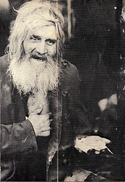 Oh ja, auch diesen Teil der Zivilisation hat er akzeptiert. Er spielt jede Woche für vier Mark. Bisher hat's aber nur mal 'ne Kleinigkeit eingebracht. Wenn schon. Auf dem Grund, den er umgegraben, aufgeschüttet und teilweise trockengelegt hat, wachsen Kohl, Kohlrabi, Steck, Rüben, Obstbäume und manches andere, die Natur gibt ihr Teil dazu. Sie gibt aber nicht nur Frühling und Sommer. Da draußen hat Johann Klencke manchen harten Winter überstanden. Ob er nichtfriere? Er zeigt auf seine nackte Brust: Wenn man die immer frei hält wie die Wangen, dann spürt man die Kälte nicht, ich hab mich schnei! dran gewöhnt." Er will nicht weg von dem Stück Erde, das er liebt, er will sein Leben leben, er hat noch die Energie, dieser Welt zu trotzen". So nach dem Motto: | |||||||||||||||||||||||||||||||||||||||||||||||||||||||||||||||||||||||||||||||||||||||||||||||||||||||