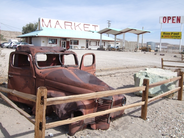 Samstag, 20. Oktober Nach dem Frühstück am Pool ging es mit dem Shuttle Bus zu "ALAMO" am Flughafen. Wir durften uns ein Mid-Size-Car von ca. 20 Stück aussuchen, wir nahmen den Chrysler PT Cruiser" mit zusätzlichem Garmin"-Navigation ohne den man fast verloren wäre, wie hat das denn früher ohne Navi geklappt? Dann die Interstate 15" Richtung Los Angeles" durch die "Mojave-Wüste", teilweise fegten Sandstürme über die Autobahn. An einer urigen kleinen Raststätte in der Wüste standen verrostete Oldtimer. Der Chef meinte, sie hätten sogar 7 Pferde und demnächst ein kleines Restaurant, auch immer einige Indiansachen und Strohhütezu verkaufen. Ich kaufte einen, der mir draußen wegen des starken Windes bis zur Grundstückswüstengrenze am Zaun wehte. Der Kaffee war ungeniesbar, ich schüttlete ihn draußen unters Autos in den Wüstensand. Dann weiter durch die Wüstenorte Bakers" und Basdahl" nach 150 Meilen eine kleine Rast in Sun City", sehr heiß dort, wie der Name schon sagt. | |||||||||||||||||||||||||||||||||||||||||||||||||||||||||||||||||||||||||||||||||||||||||||||||||||||||