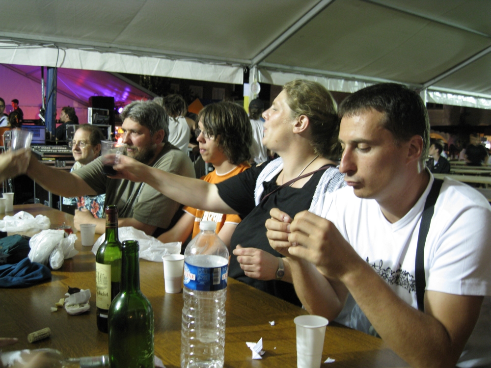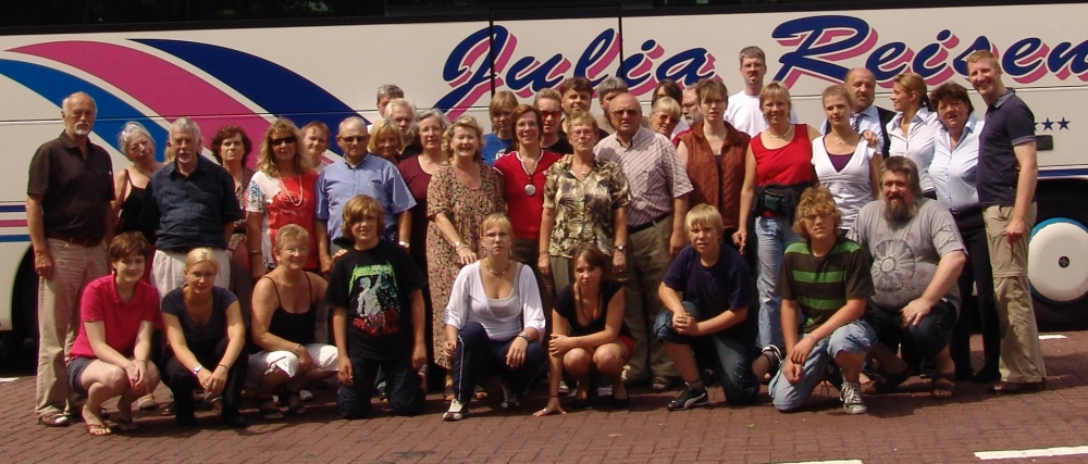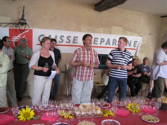 Pünktlich zum Weinfest 2008 40-köpfige Delegation der Samtgemeinde fuhr nach Sauveterre. Diesmal führte Jan Christoph Oetjen die 40-köpfige Delegation an, die in dem Kanton in 16 Gastfamilien untergebracht wurde. Wie immer wurden wir sehr herzlich in Empfang genommen". Wie bei den vergangenen Besuchen erreichte die Gruppe pünktlich um 18 Uhr den Sauveterrer Platz der Genossenschafts-Kellerei. | |