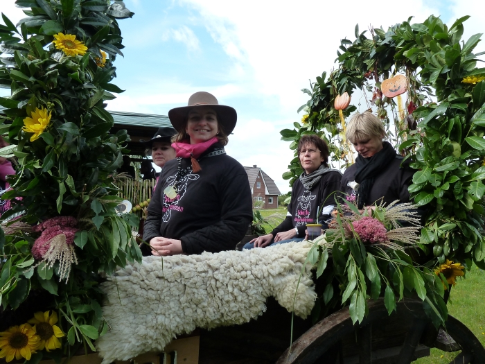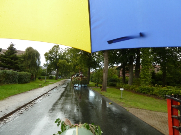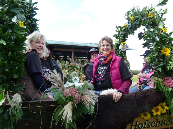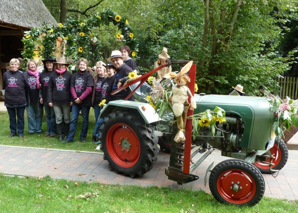 Die Enkelin einer angeblichen Hexe aus Höperhöfen wurde 1639 in Rotenburg verbrannt", sagte Guido Bruns. Und weiter: Das ist schriftlichfestgehalten." Das dieses nicht die einzige Hexenverfolgung in dem kleinen Ort gewesen sein soll, entstand die Idee, sich mit einem Hexenwagen am Ernteumzug des Schützenvereins Bötersen-Höperhöfen zu beteiligen. Nicht fehlen durften dabei Reisigbesen, Kürbis und ein dampfender Kessel auf der Schaufel des von Guido Bruns gelenkten Krieger KS 33". Der Jury, die aus Erntemeisterin Heike CordesHartwig Müller und Cord Trefke bestand, gefielen Idee und Ausführung so gut, dass Höper Hexchen" als schönster Wagen prämiert wurde. Weitere Auszeichnungen erhielten die jungen Boitzter Piraten", die Höper Jugend" und der TSV Bötersen mit dem Atomkraft-Anhänger. Der Entscheidung nicht einfach, denn insgesamt beteiligten sich 13 bunt geschmückte Gespanne am Umzug von Bötersen zum Festplatz nach Höperhöfen. Wir haben auf Mais verzichtet und unseren Erntedankwagen nur mit Früchten aus dem Garten verziert", betonte Jochen Corleis, der mit seinem 1955 gebauten Lanz den Anhängermit den Kindern der Boitzter Spinnstuv" zog. Noch ein paar Jahre mehr auf dem Buckel haben der Hatz und der historische Ackerwagen von Klaus Klencke, der als Schäfer Scha(r)fe Höperhöferinnen" transportierte. Während Florian Öhlers mit einem Unimog aus dem Jahr 1963 unterwegs war, hatte Holger Pollak mit seinem Yamaha-Quad eine ganz moderne Zugschinegewählt. Während des Umzuges wurde ein Zwischenstopp bei Heike Cordes eingelegt, wo alle Gäste zu einem Umtrunk eingeladen waren, bevor es weiter zum Festplatz ging. Dort wurde jeder Wagen mit Applaus empfangen. Nach dem Einbringen der Erntekrone durften sich im Festzelt die Gäste über Vorführungen des Kindergarten, der Kids der Boitzter Spinnstuv", der Landjugend und der Flötengruppe der Grundschule freuen. Dazu wurde Kaffee und Kuchen serviert, den die Schützendamen und die Ehefrauen der aktiven Schützen vorbereitet hatten. Wir führen mit dem Erntefest eine Tradition fort, die wir auch in Zukunft nicht missen möchten", betonte Doris Lusch, Vorsitzende des Schützenvereins Bötersen-Höperhöfen. | ||||||||||||||||||||||||||||||||||||||||||||||||||||||||||||||||||||||||||||||||||||||||||||||||||||||