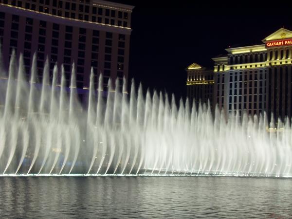 Dann weiter zur großen Show am Treasure Island", das große mittelalterliche Schiff geht 5 x am Tag unter, dann durchs riesige Casino an Roulettetischen vorbei. Vor dem Mirage" brennende Wasserfälle in Richtung des sehr edlen Billagio"-Hotel und Casino, davor ein riesiger See mit einer imposanten Fontänen-Show mit Musik von Pavarotti. Gegenüber das Venetian" mit dem Markus-Platz und Rialtobrücke, daneben das Paris" mit dem Eiffelturm und Hotel. Jetzt waren wir schon mehr als 24 Stunden unterwegs und k.o., deshalb schnell zurück vorbei an den Menschenmassen ins ruhige Hotel St. Tropez. | |||||||||||||||||||||||||||||||||||||||||||||||||||||||||||||||||||||||||||||||||||||||||||||||||||||||