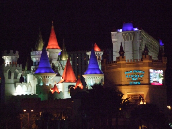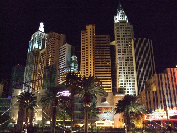 | Nach dem Relaxen unter Pamen am Pool geht's schon wieder weiter zur westlichen Richtung des Strip". Auf dem Wege liegt das Casino Hooters". Das erfolgreiche Geschäftsmodell von Hooters" basiert auf sex sells". Wir essen dort im Restaurant mit den leicht bekleideten Kellnerinnen nicht schlecht, kaufen noch Souvenirs. Dann geht's weiter zum Excalibur", einer mittelalterlichen riesigen Casino-Anlage, dahinter das Luxor" mit der Sphinx und großer Pyramide, in der die Hotelzimmer sich in der Außenhaut der Pyramide befinden, wie der Fahrstuhl dorthin kommt, bleibt uns ein Rätsel. Zurück durch das auch riesige MGM-Grand". Gegenüber befindet sich das New York, New York", die angeblich größte Spielerstadt in Las Vegas, mit der nachgebauten Freiheitsstatue, Empire State Building und Brooklyn Bridge. Auf dem Rückweg liegt noch das Harley Davidson Cafe" mit super Motorrädern teilweise ausgerüstet mit Stereoanlage besser als im Auto. Nach solch einem langen Fußmarsch sind wir froh, wieder im ruhigen Hotel St. Tropez" zurück zu sein. | |||||||||||||||||||||||||||||||||||||||||||||||||||||||||||||||||||||||||||||||||||||||||||||||||||||||
